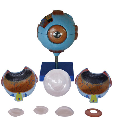 本模型適用于中等學(xué)校講解生理衛(wèi)生課程時(shí)作直觀教具用。模型用于顯示人類眼球的解剖結(jié)構(gòu),如眼球壁的三層膜(外膜、中膜和內(nèi)膜)和填充內(nèi)部的主要折光體、晶狀體和玻璃體等。
