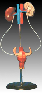 本模型適用于中學、醫(yī)學院講解女性泌尿系統(tǒng)時作直觀教具用。幫助學生了解女性泌尿生殖系統(tǒng)的主要臟器的外形及其內部結構。模型顯示了腎、輸尿管、子宮、子宮附件、陰道、卵巢系膜、子宮圓韌帶、子宮動脈等。用PVC制成,安放于塑料座上。