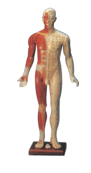 高850mm,一側(cè)示肌肉、皮神經(jīng),一側(cè)示十四經(jīng)脈、穴位及經(jīng)外穴。